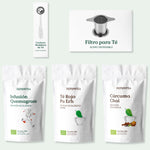 Acelera tu metabolismo, estimula la quema de grasas durante el ejercicio y evita picar entre horas con este pack de tés e infusiones a granel + filtro infusor de acero inoxidable: